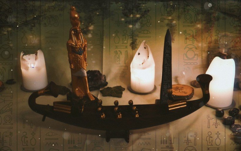 Jessi bat mich darum, mich umzusehen. Ich erzählte weiter, dass ich mich in einem großen Saal befinde mit einer sehr hohen Decke, die von kunstvollen Säulen getragen wird und ebenso waren große, offene Fenster von ihnen gesäumt. Die Fenster an sich waren von weiß-transparenten, leichten Vorhängen verhangen. In dem Saal verteilt, zwischen den Säulen, stehen Kerzen- und Öl-Schalen auf Ständern, die einen wunderschönen Duft verteilen. Die Wände sind mit Malereien, Hieroglyphen, versehen… Weiter passierte erstmal nichts.