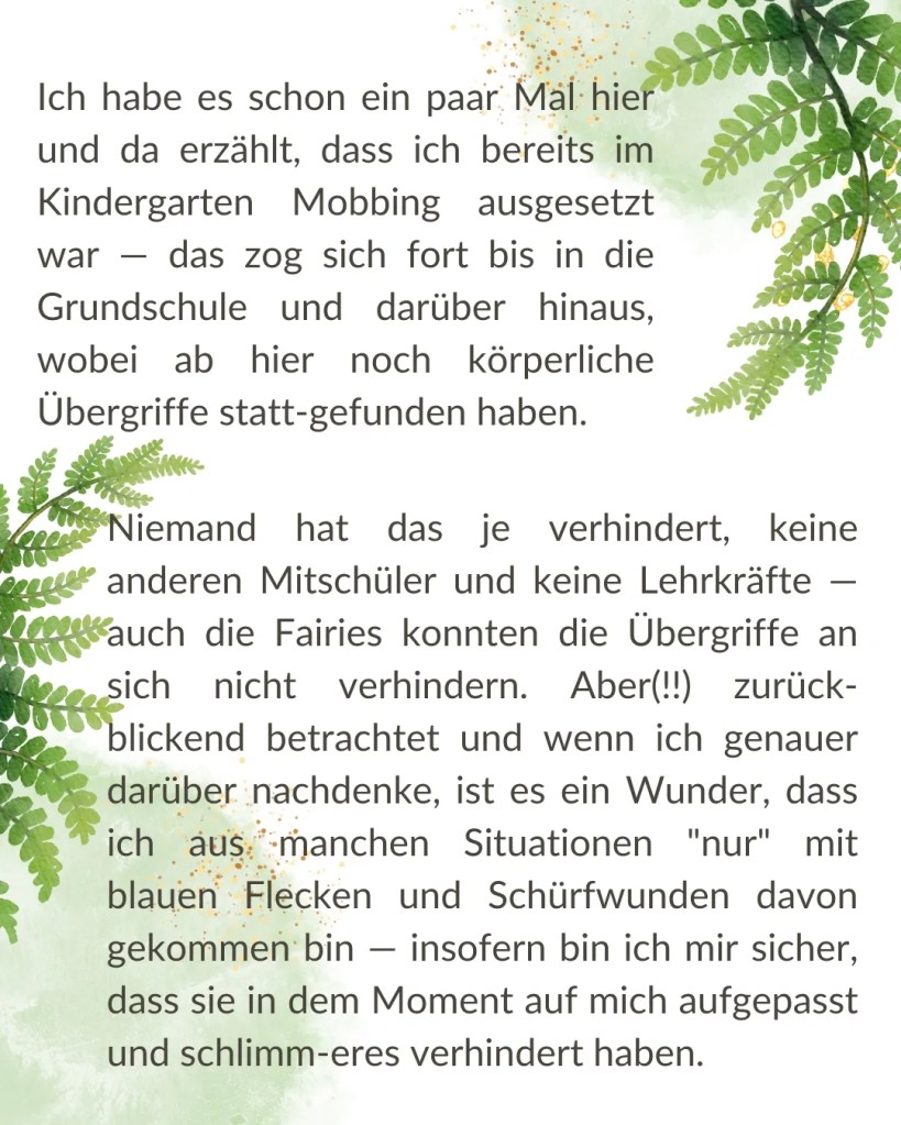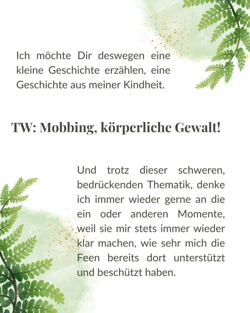 ⠀Hierbei geht es aber eher um ein sehr dunkles Kapitel meines Lebens, aber ich möchte Dir gerne davon erzählen, weil es rückblickend betrachtet ein schönes Beispiel dafür ist, wie kraftvoll die Unterstützung der Feenwesen in unserem Leben sein kann 🧚🏻♀️ — und lies in jedem Fall noch die nachfolgende Anmerkung.